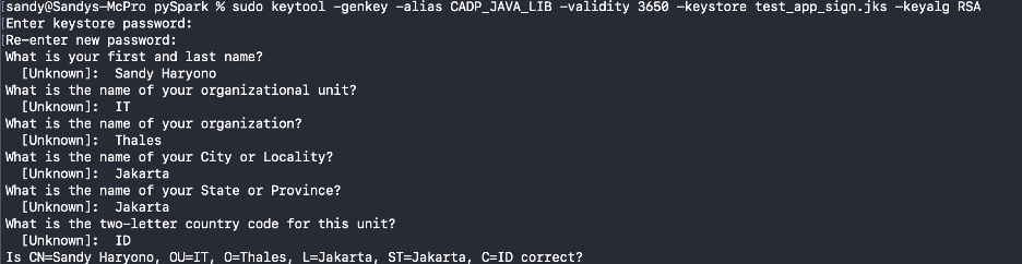$ sudo keytool -genkey -alias <your_lib_name> -validity 3650 -keystore <your_jks_file.jks> -keyalg RSA